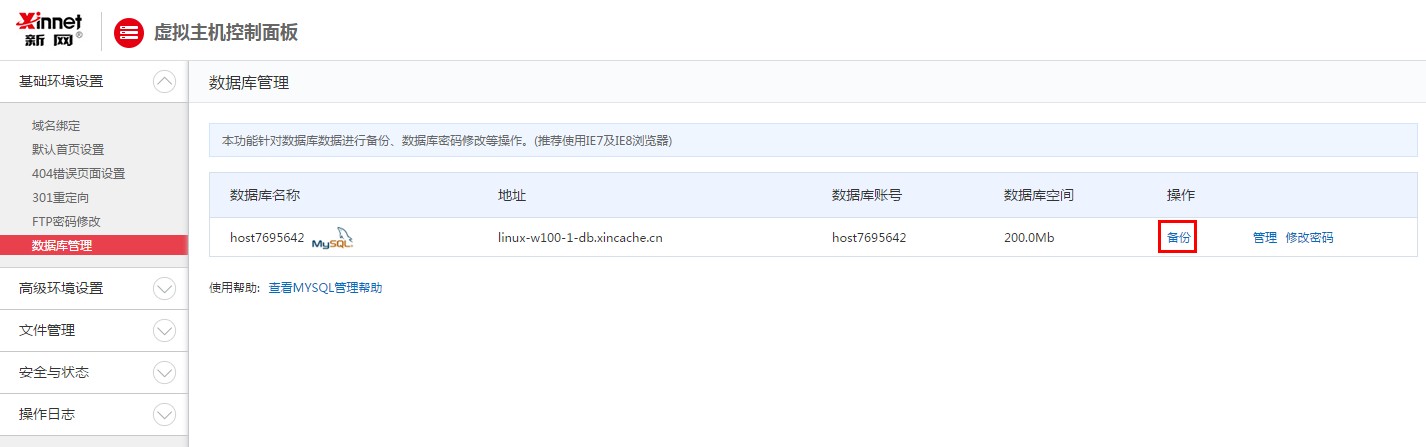 當您購買了包括MySQL5.1的虛擬主機,系統會默認為您提供MySQL數據庫,數據庫的基本信息數據庫服務器地址、數據庫用戶名及密碼。您可以直接進入虛擬主機控制面板管理您的MySQL數據庫。